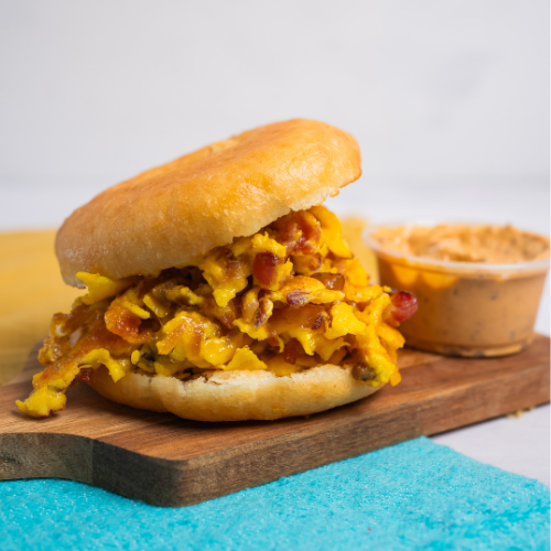 Tocino, huevo y cheddar derretido. En pan artesanal con aderezo de chipotle.