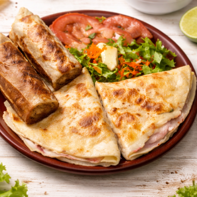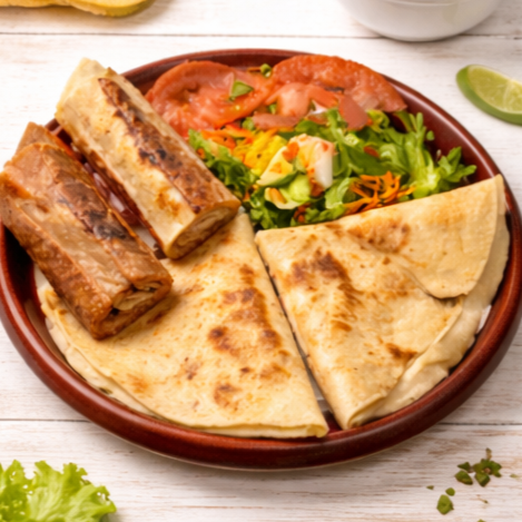 Tres quesadillas en Tortilla Gordita o Maíz + Ensalada fresca.