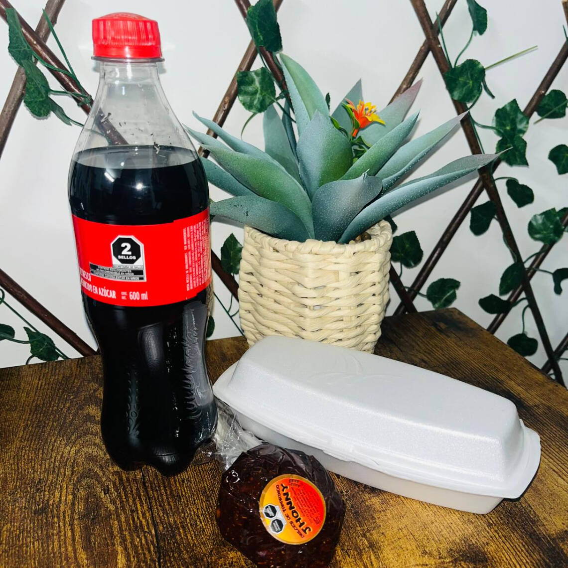CORN DOG, COCA COLA, DULCE TAMARINDO Y DULCE COCO