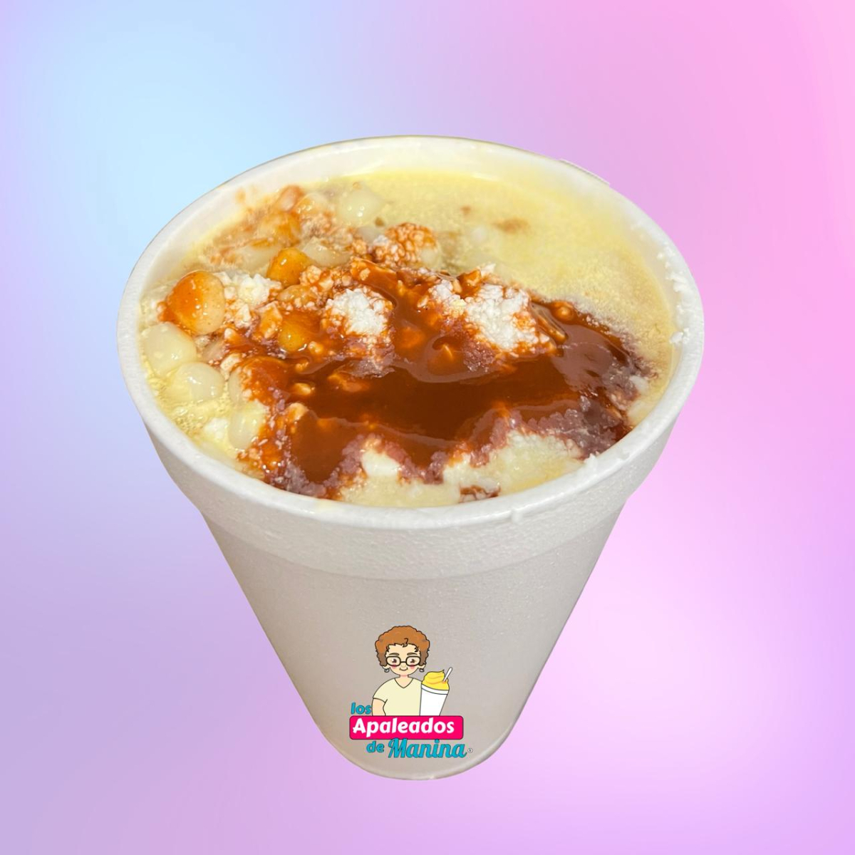 DOS SABORES DE APALEADOS, ESCOGE EL TOPPING AL GUSTO. VASO 20 OZ.*IMAGEN ILUSTRATIVA, SE ENVIA VASO CON TAPA, EMPLAYADO.