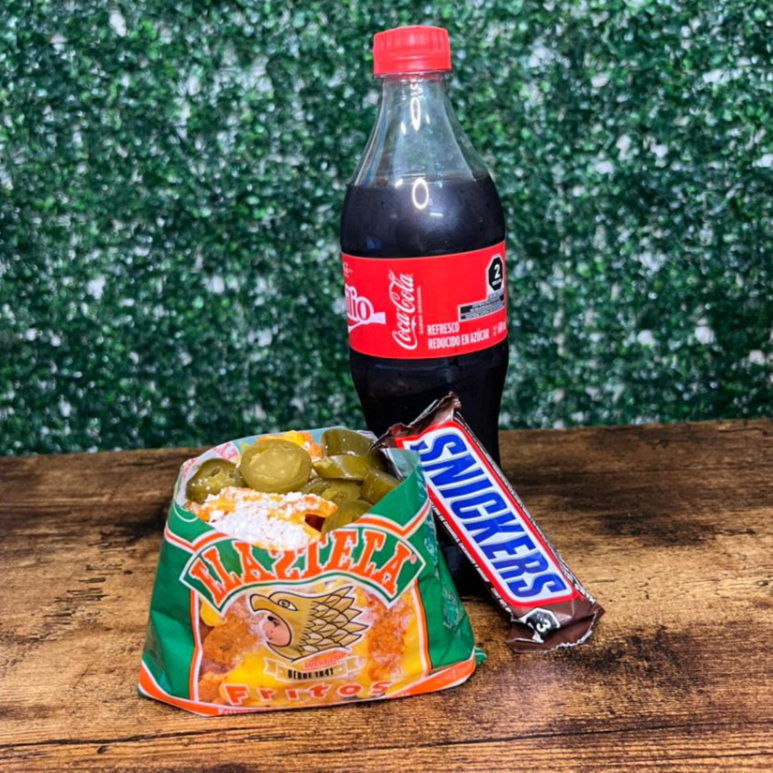 FRITOS C/QUESO, 1 COCA COLA, 1 SNICKER Y DULCECOCO