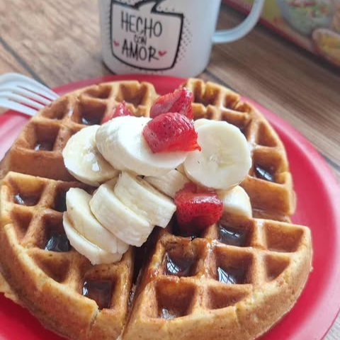 WAFLES CON FRUTA, TOCINO Y HUEVO