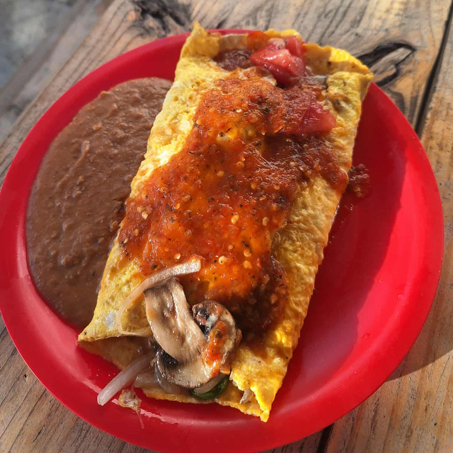 PAR DE HUEVOS EN OMELETTE CON QUESO Y VERDURAS ACOMPAÑADO DE FRIJJOL