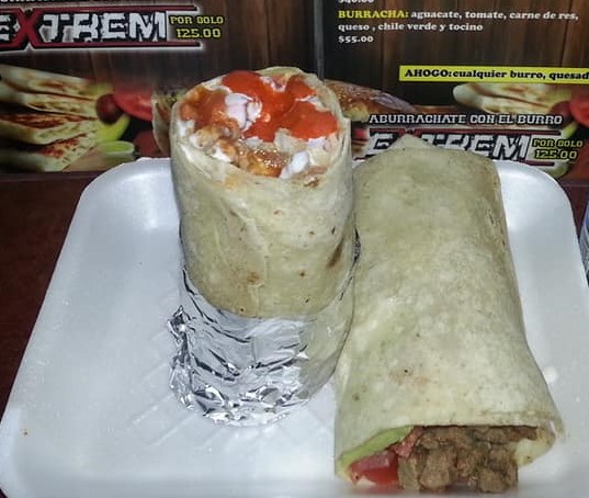 Tortilla gordita de harina, queso, carne de res.