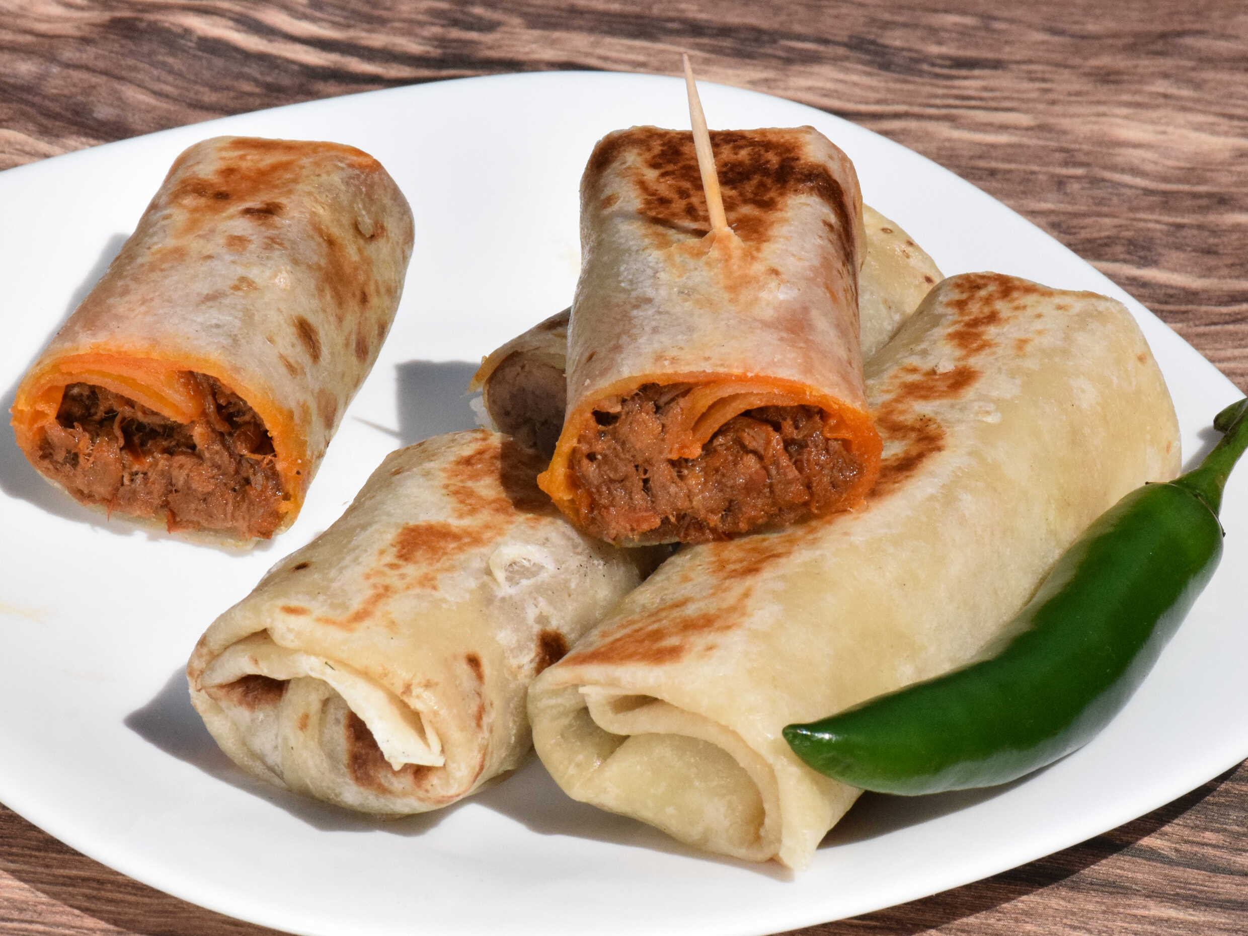 3 burritos mixtos + 2 burritos de frijol con chicharrón