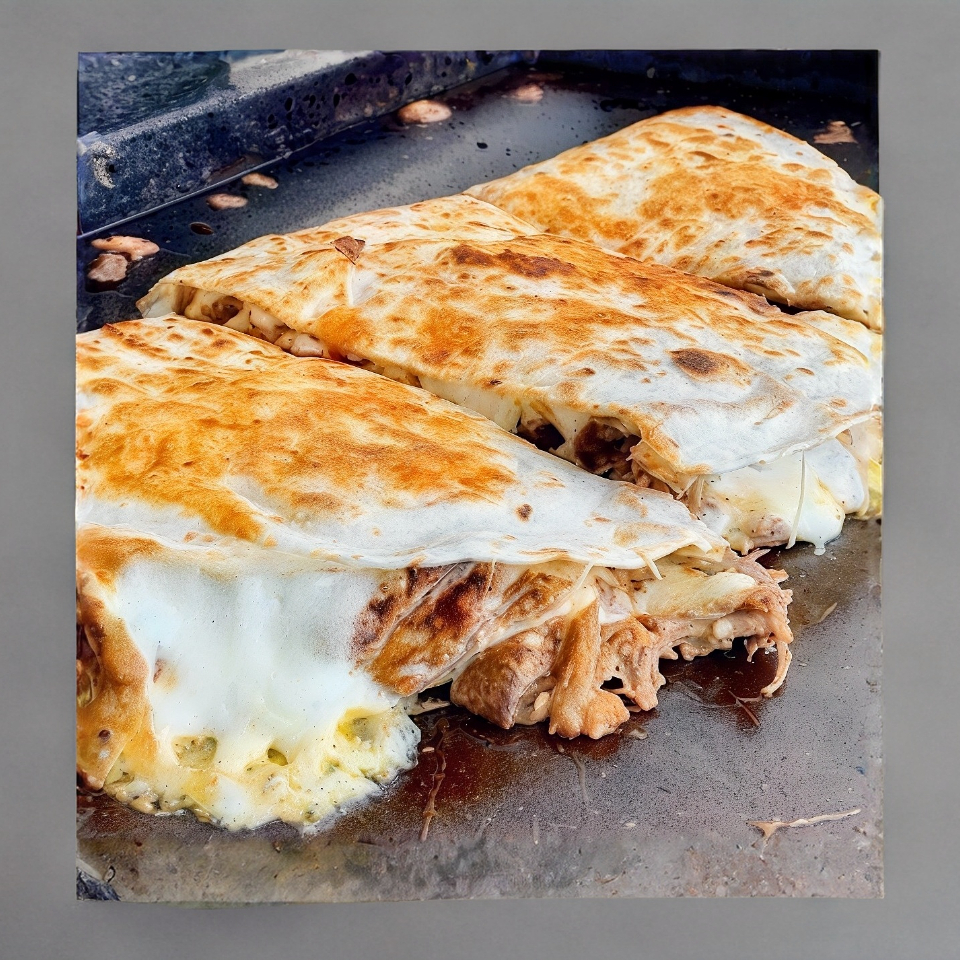 Doble tortilla de harina, queso, birria de res y verdura.
