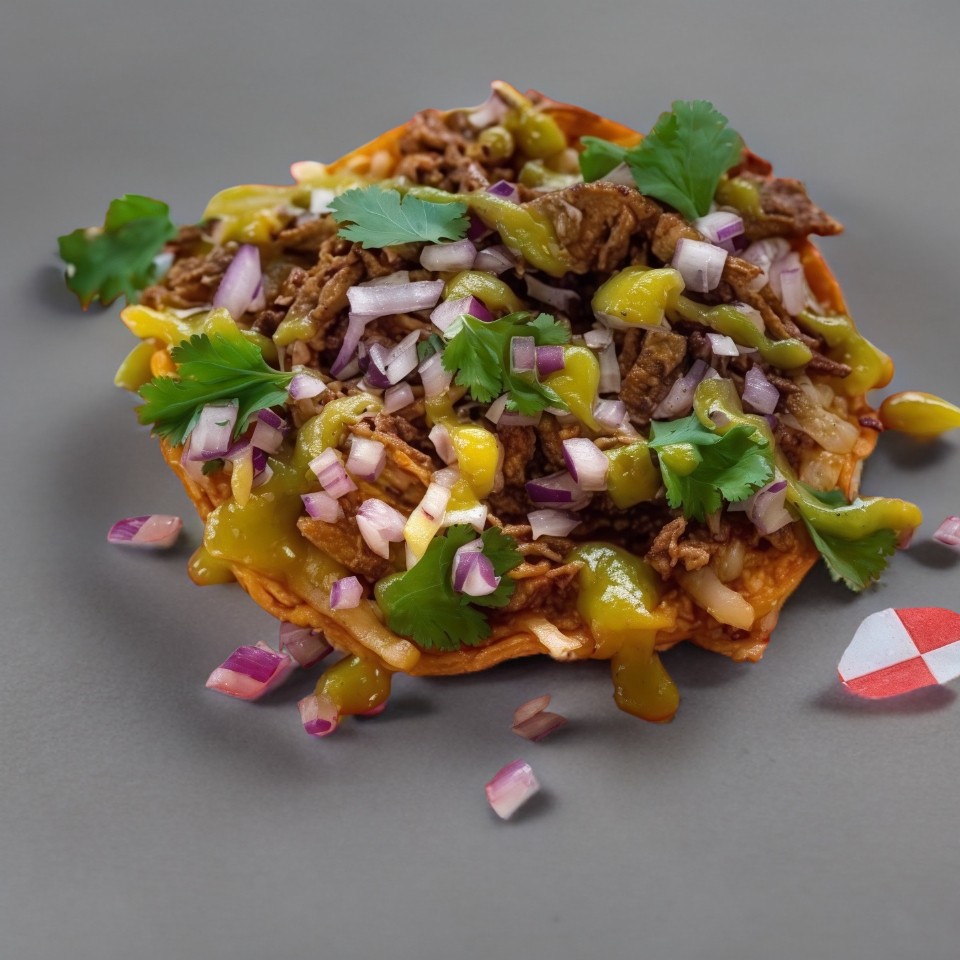 Doble tortilla semidorada con birria de res, cebolla y cilantro.