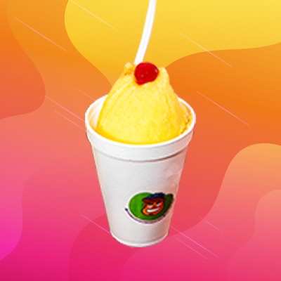 Hielito de piña colada golpeado con un mazo hasta quedar finito como nieve de garrafa. Servido en vaso de 6 onzas
