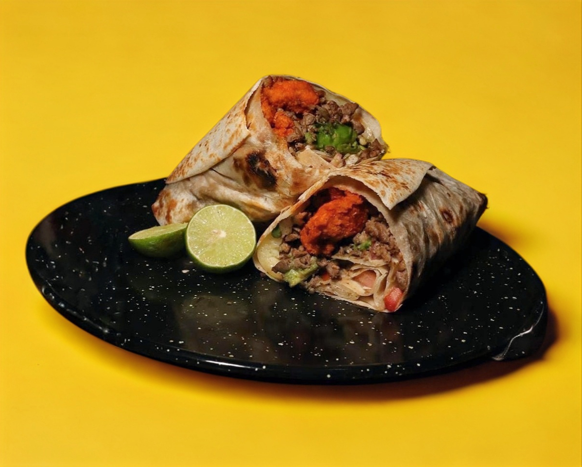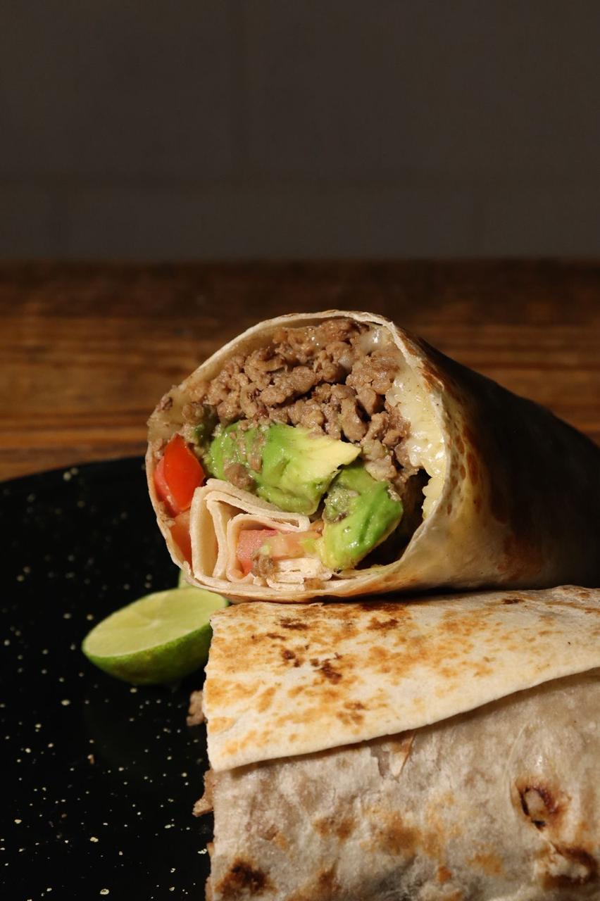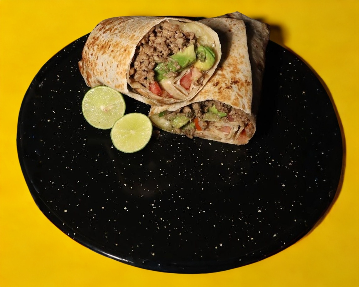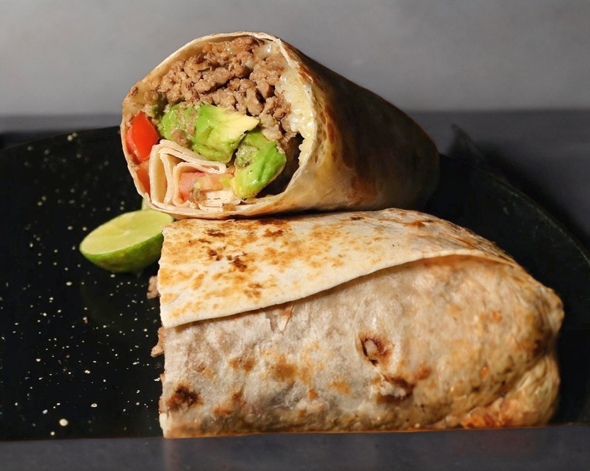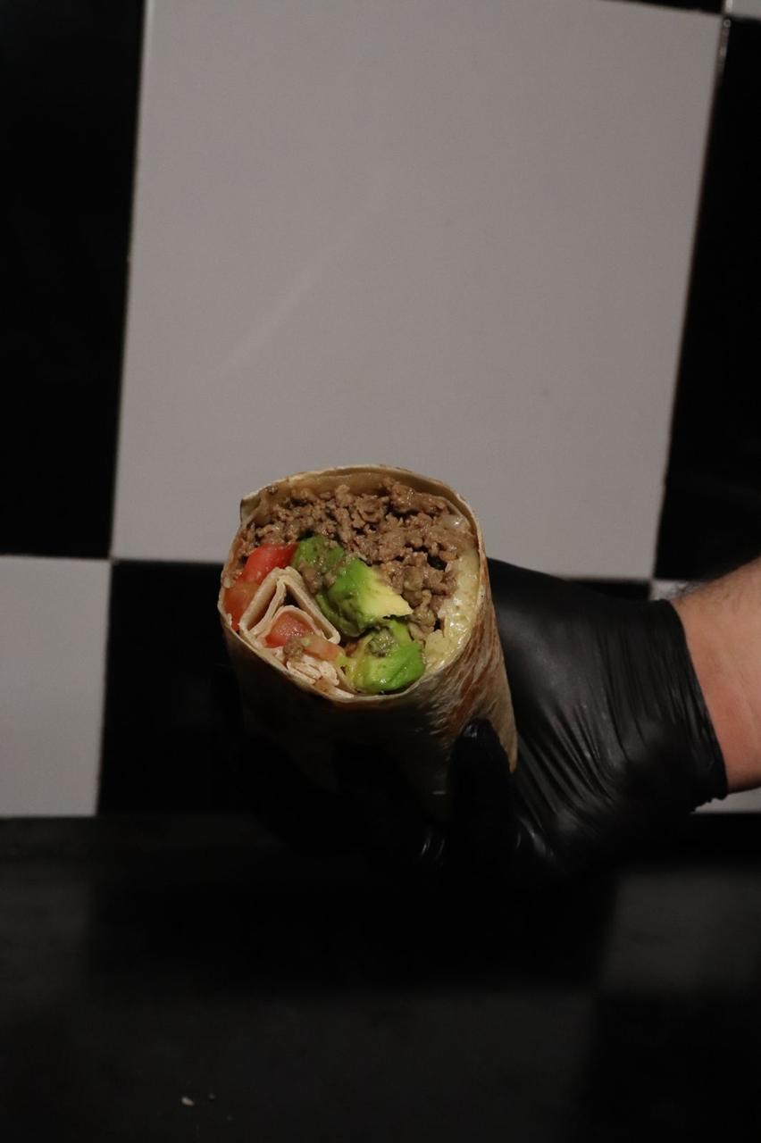 Carne, queso, aguacate, tomate y queso Philadelphia.