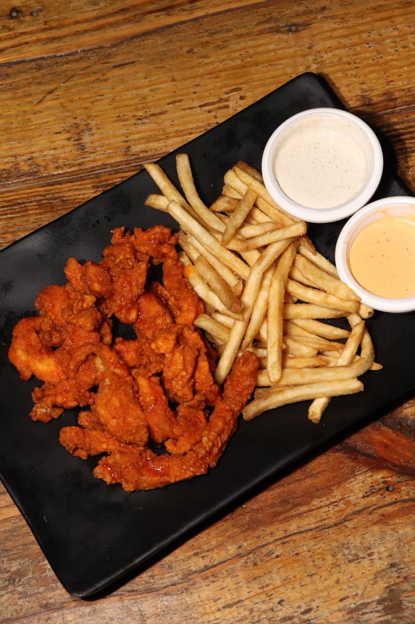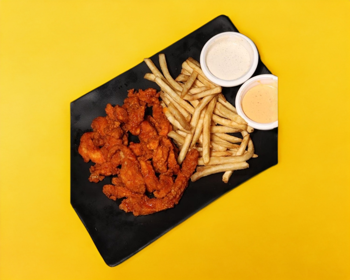 Papas fritas más 200 g de pollo empanizado con salsa a elegir.