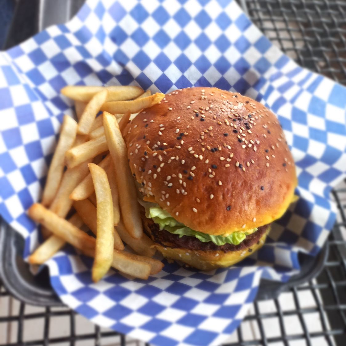 Hamburguesa c/tocino y aros de cebolla y orden de