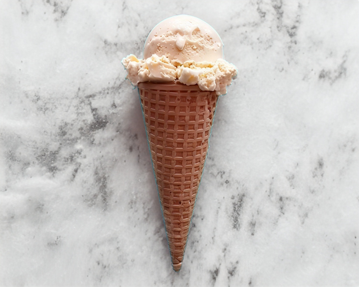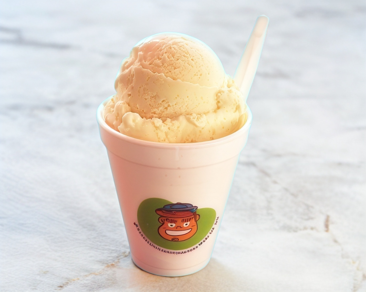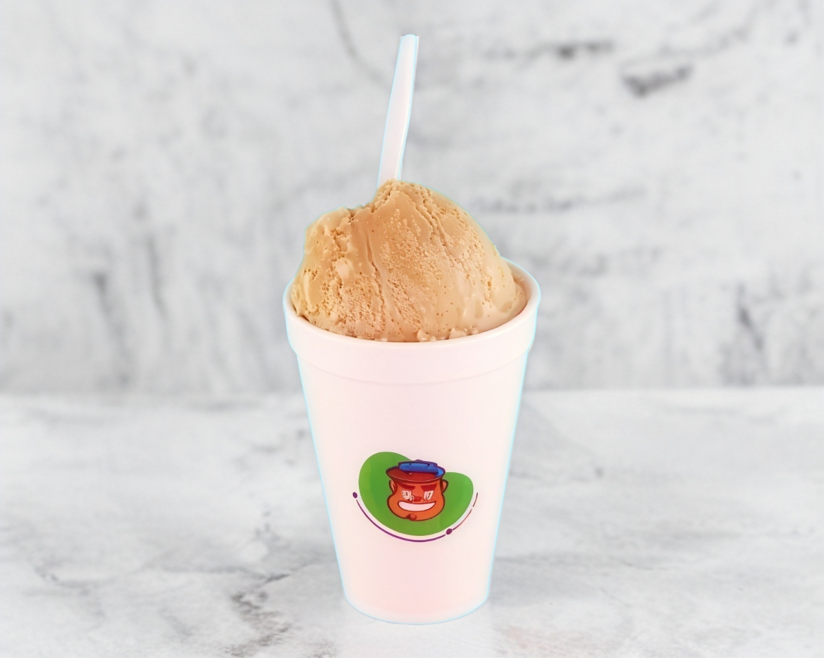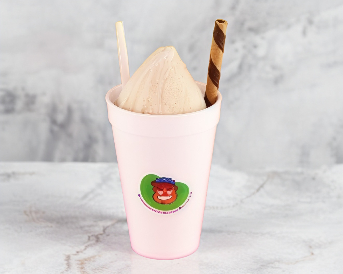 Hielito de leche vainilla golpeado con un mazo hasta quedar finito como nieve de garrafa. Srvido en vaso de 6 onzas
