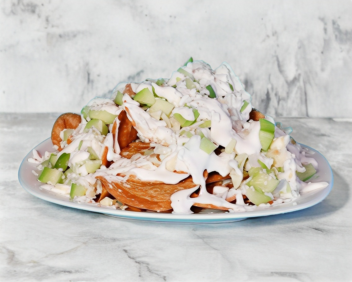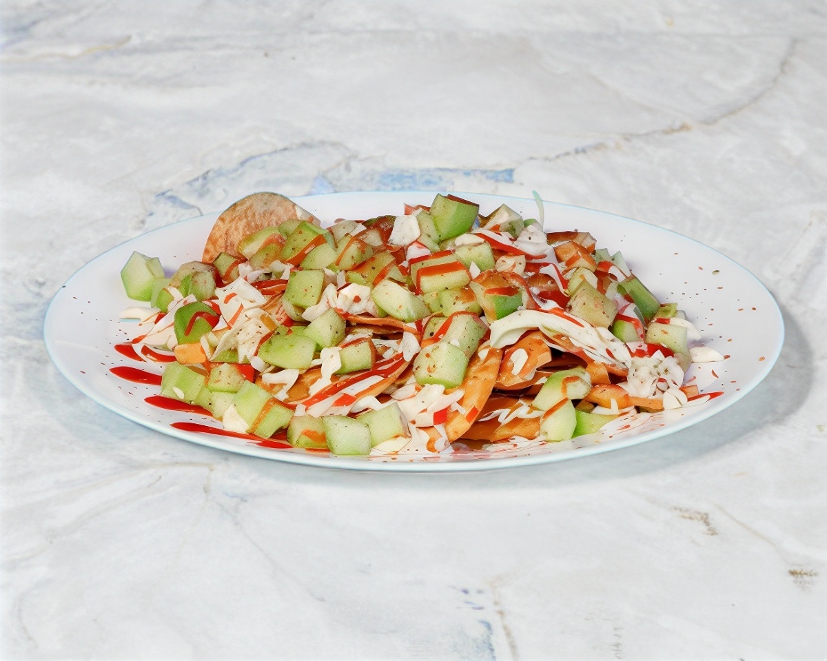 Frituras a elegir con repollo, pepino, media crema, queso cotija, salsas y limon.