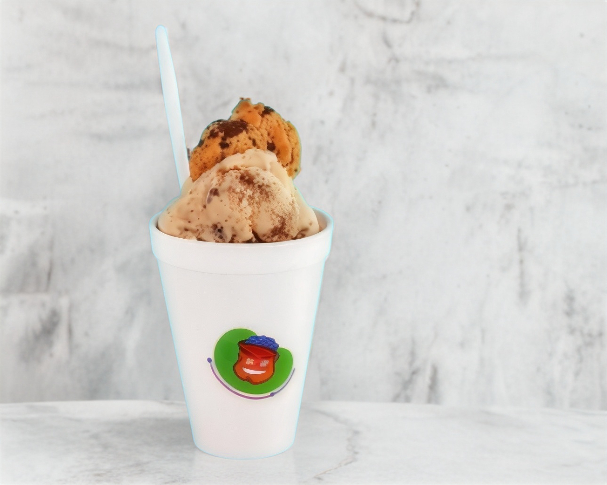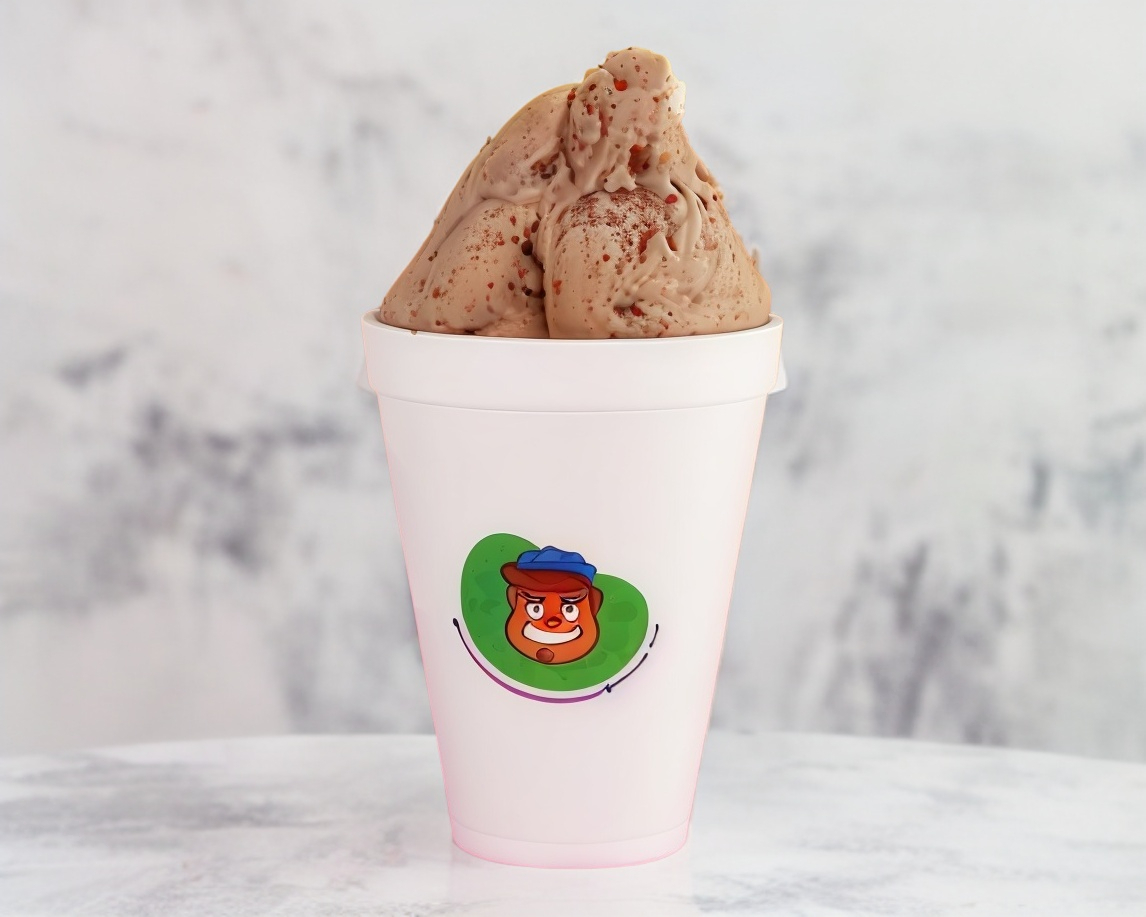 Hielito de chips ahoy golpeado con un mazo hasta quedar finito como nieve de garrafa. Servido en vaso de 16 onzas.