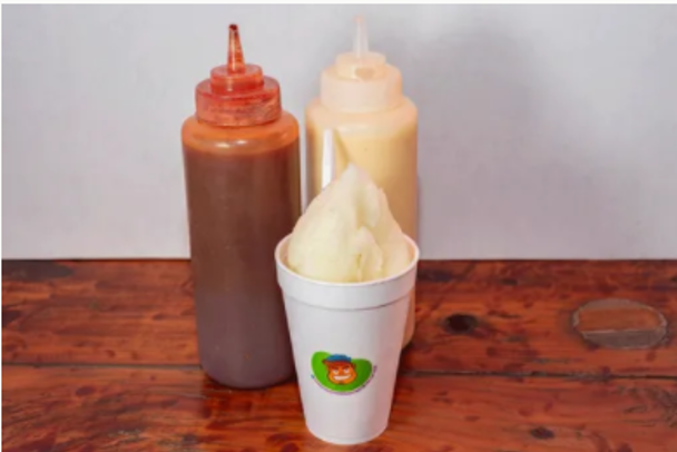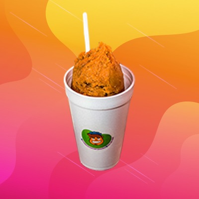 Hielito de mango natural golpeado con un mazo hasta quedar finito como nieve de garrafa. Servido en vaso de 16 onzas.
