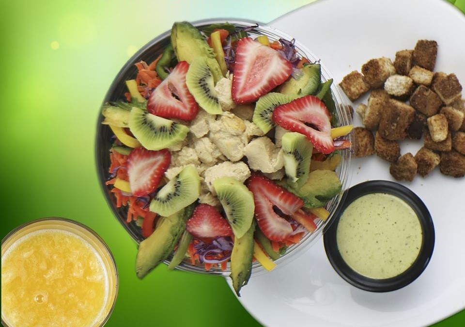 Ensalada Maluvys De Base Más Fresa, Naranja, Aguacate, Kiwi, Proteína A Elección