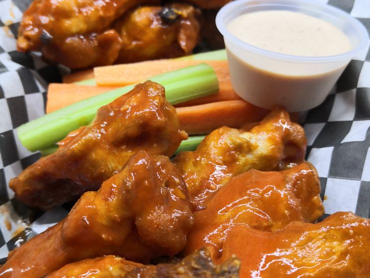 24 Piezas de alitas bañadas en la salsa de tu elección, acompañado de aderezo, apio y zanahoria. Salsa: búfalo habanero, tamarindo, BBQ chipotle, búfalo, BBQ, mango.