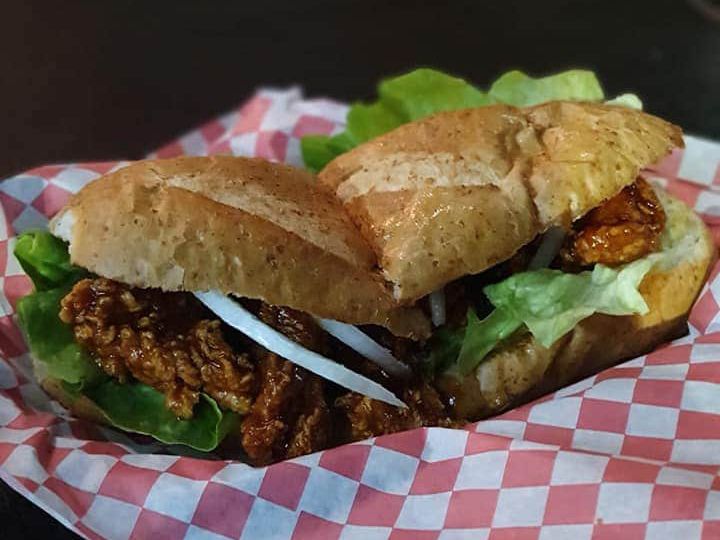 Pan de baguette integral con boneless en la salsa de tu elección, acompañado de lechuga orejona, tomate, pepino y cebolla asada. Salsa: búfalo habanero, tamarindo, BBQ chipotle, búfalo, BBQ, mango.