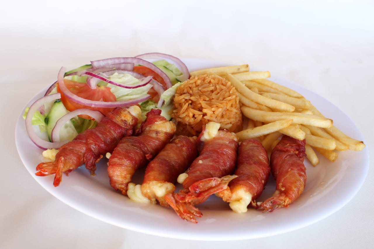 Pescado, camarón, chile güerito relleno de marlin.
