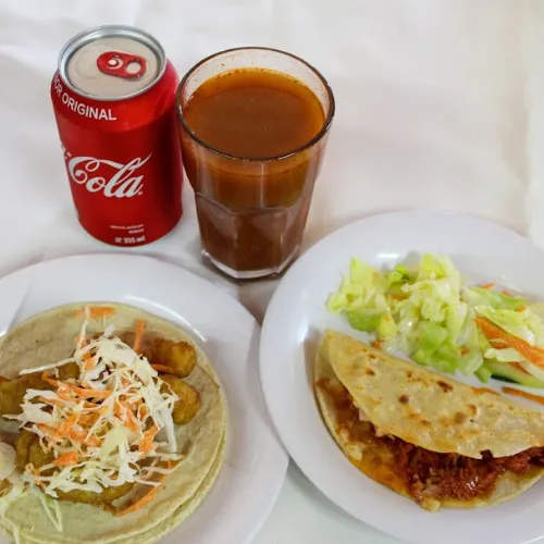 Quesadilla de Marlin*1 + Taco Fish de Camarón*2 + Jugo Bichy*1 + Coca Cola Light*1