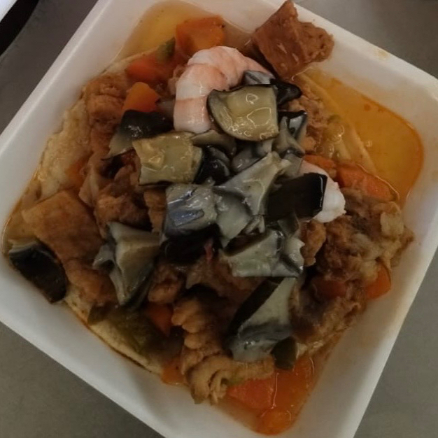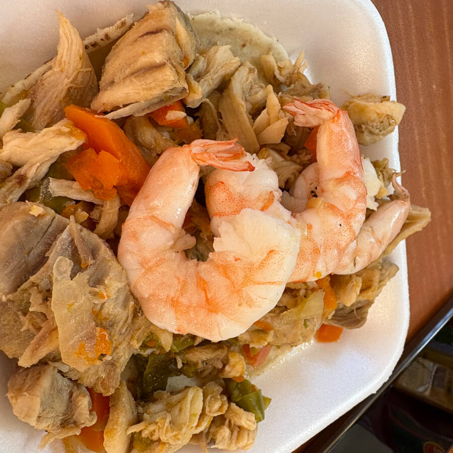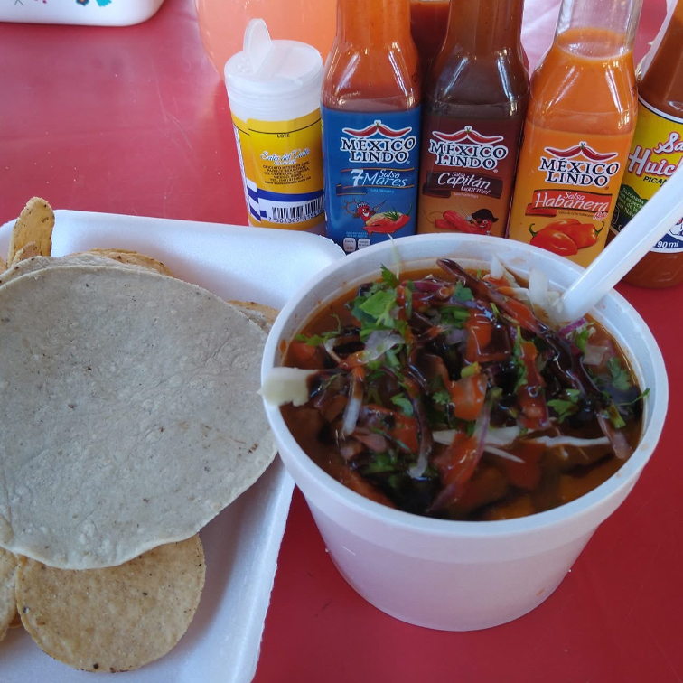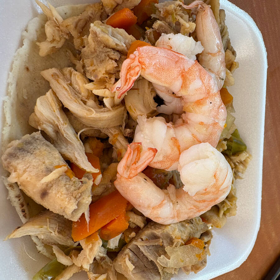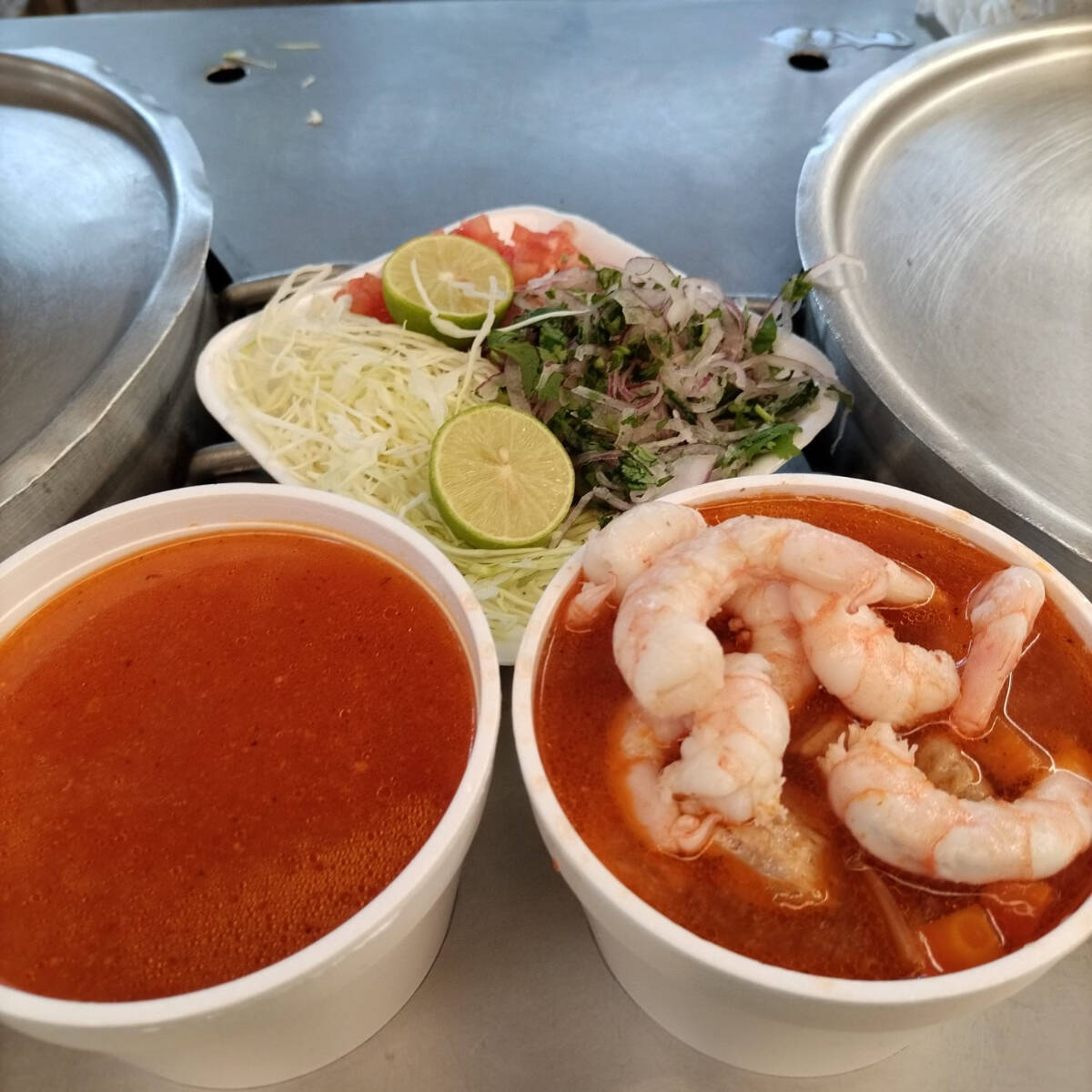 ORDEN DE MEDIO LITRO DE CAHUAMANTA CON CAMARON, VERDURA, TOTOPOS O TORTILLA