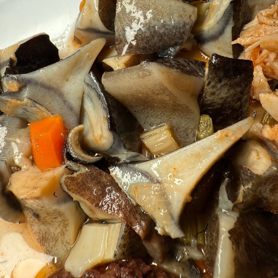 ORDEN DE MEDIO LITRO DE CAHUAMANTA CON CAMARON Y ALETA, VERDURA, TOTOPOS O TORTILLA