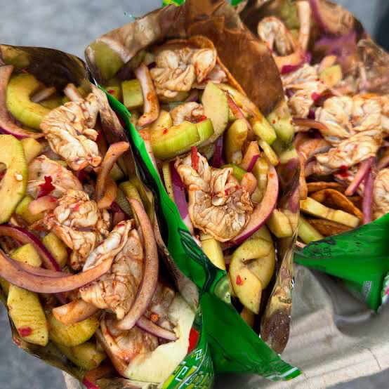 Orden de Callitos Con Camarones Cocidos con Clamato, Cebolla Morada y Salseado Especial