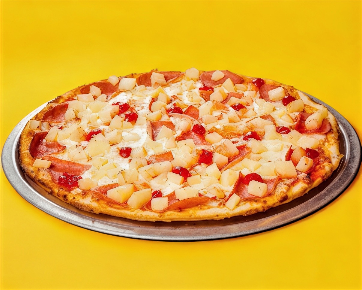 Pozza Hawaiana Grande de 8 rebanadas, Ingredientes: Jamón, cereza, piña. (tamaño 35x35)