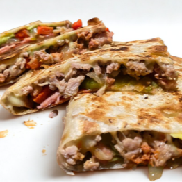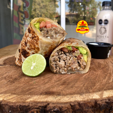 Carne adobada, tomate, aguacate y queso mozarella. Incluye salsas y aderezos.