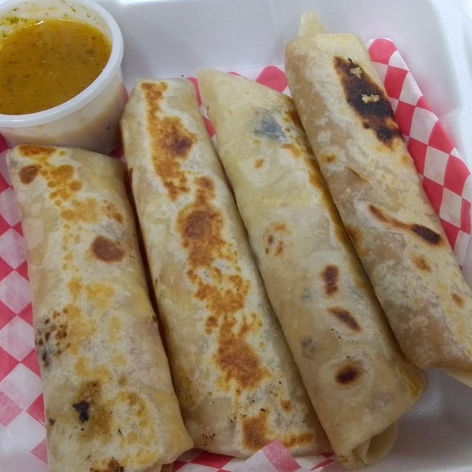4 burritos de huevo revuelto al gusto y un burrito de frijol