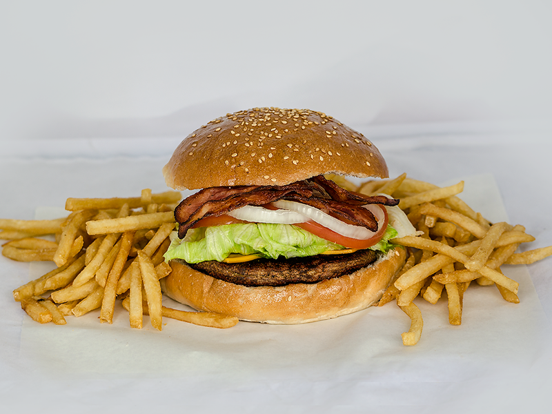Hamburguesa con Tocino y Papas*
