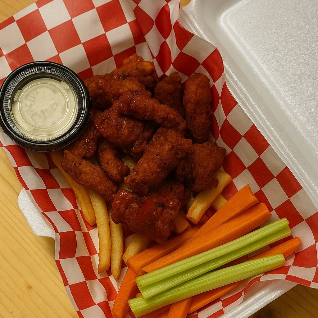 pechuga de pollo, queso chihuahua, queso amarillo, lechuga, tomate y papas.