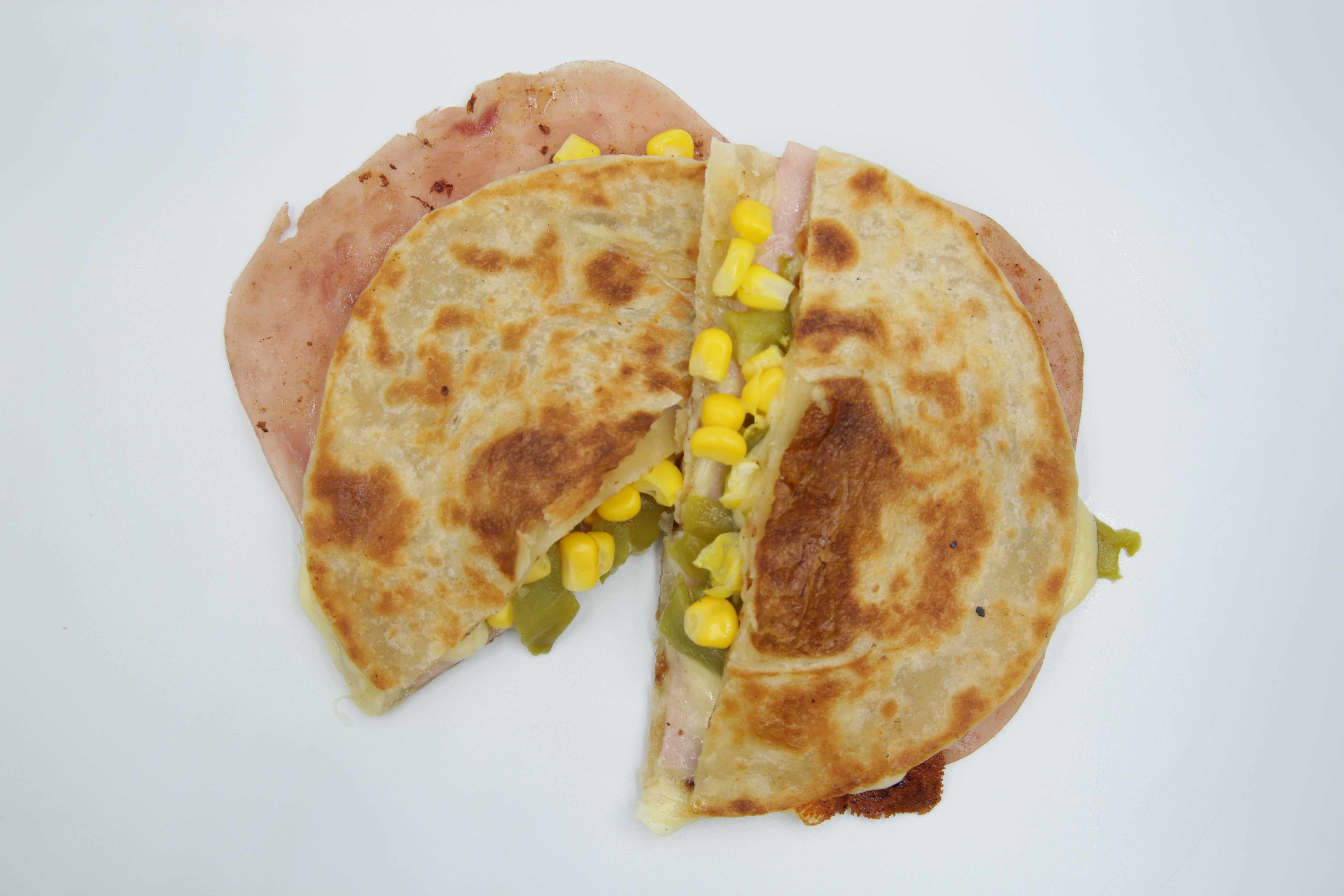 Pan telera, aguacate, tomate, cebolla, mayonesa, pierna, jamón y chile verde.