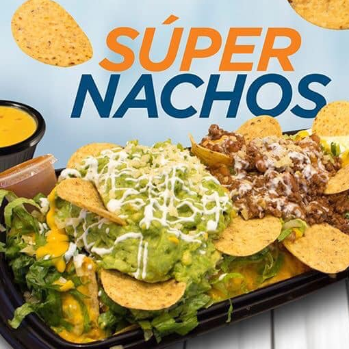 Papas fritas, pollo, tocino, aderezo ranch, queso cheddar y mezcla de quesos