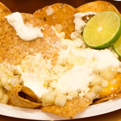 Tostitos acompañados de carne deshebrada, queso amarillo y chile jalapeño