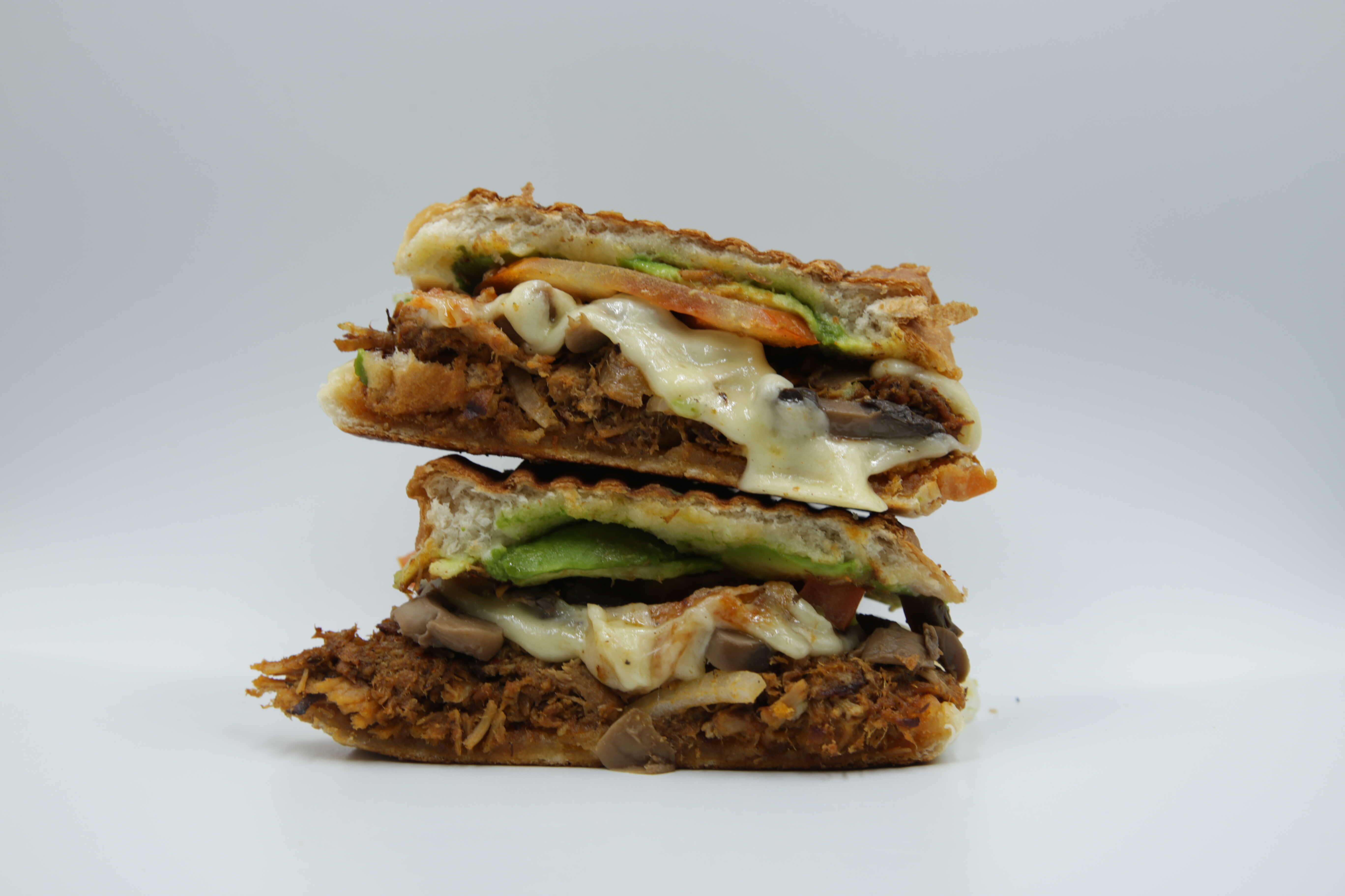Pan telera, aguacate, tomate, cebolla, queso, chilorio y champiñones.