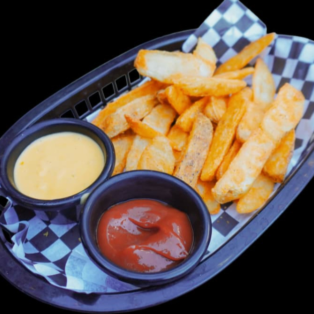 Clásicas tiras de papa doradas y crujientes, ideales para acompañar cualquier comida, acompañadas de catsup.