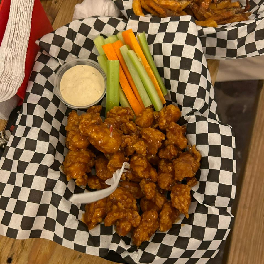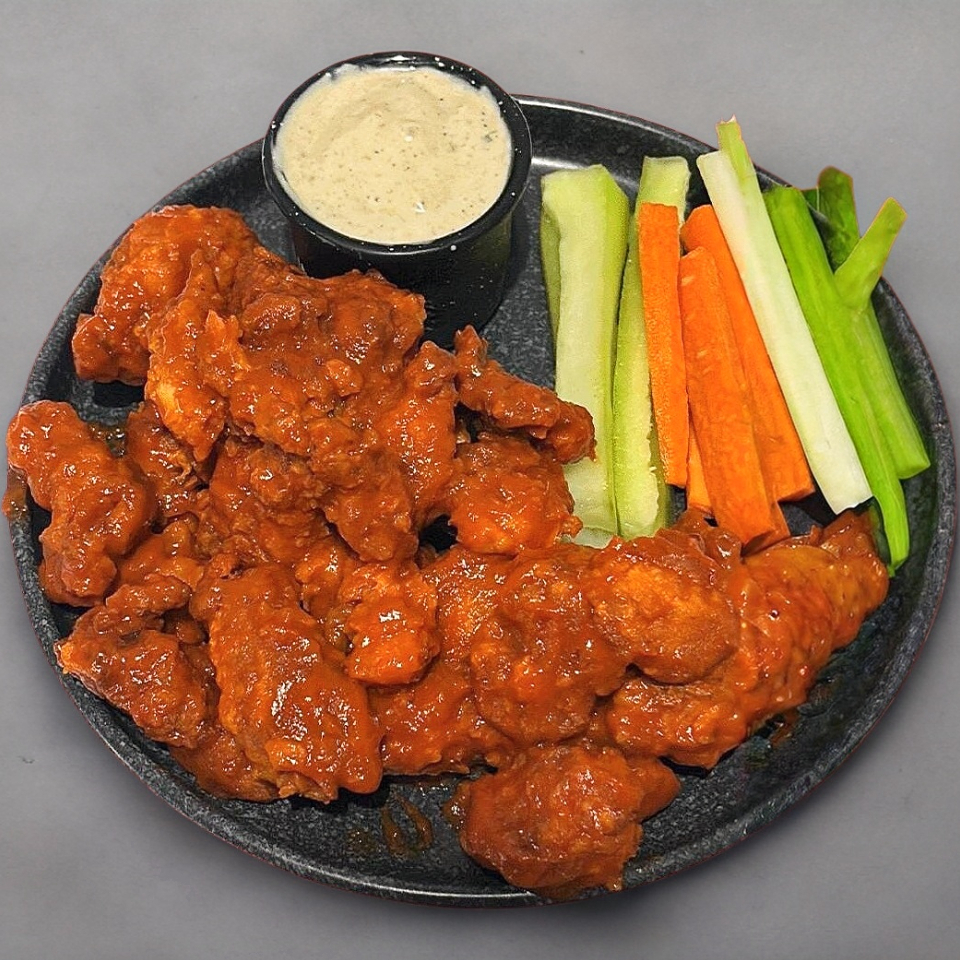 200gr de boneless, salsa a elegir, acompañados con pepino, zanahoria y apio, incluye aderezo de la casa