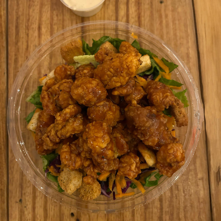 150gr de boneless, salsa a elegir, sobre una cama de lechuga, col morada, zanahoria rayada y crotones