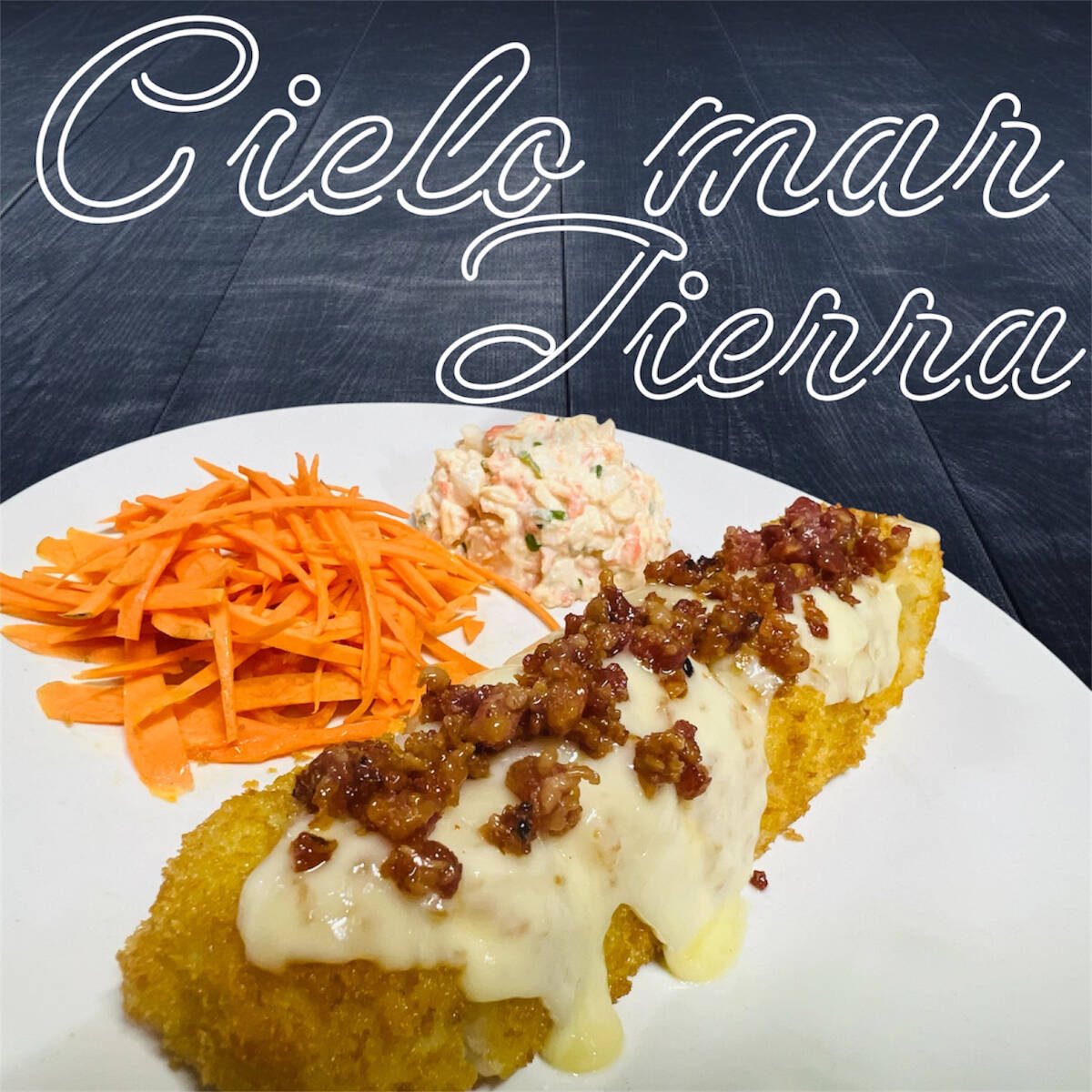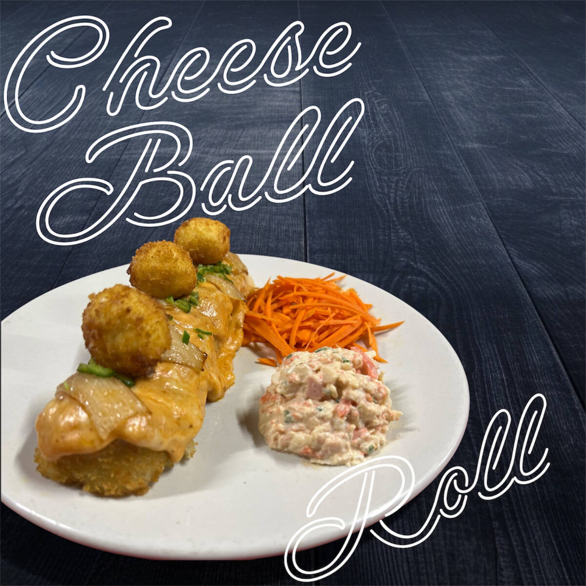 Camarón, res, pepino, phila, aguacate y tocino. Gratinado especial, cebolla caramelizada, chile serrano y 4 bolitas de queso empanizadas.