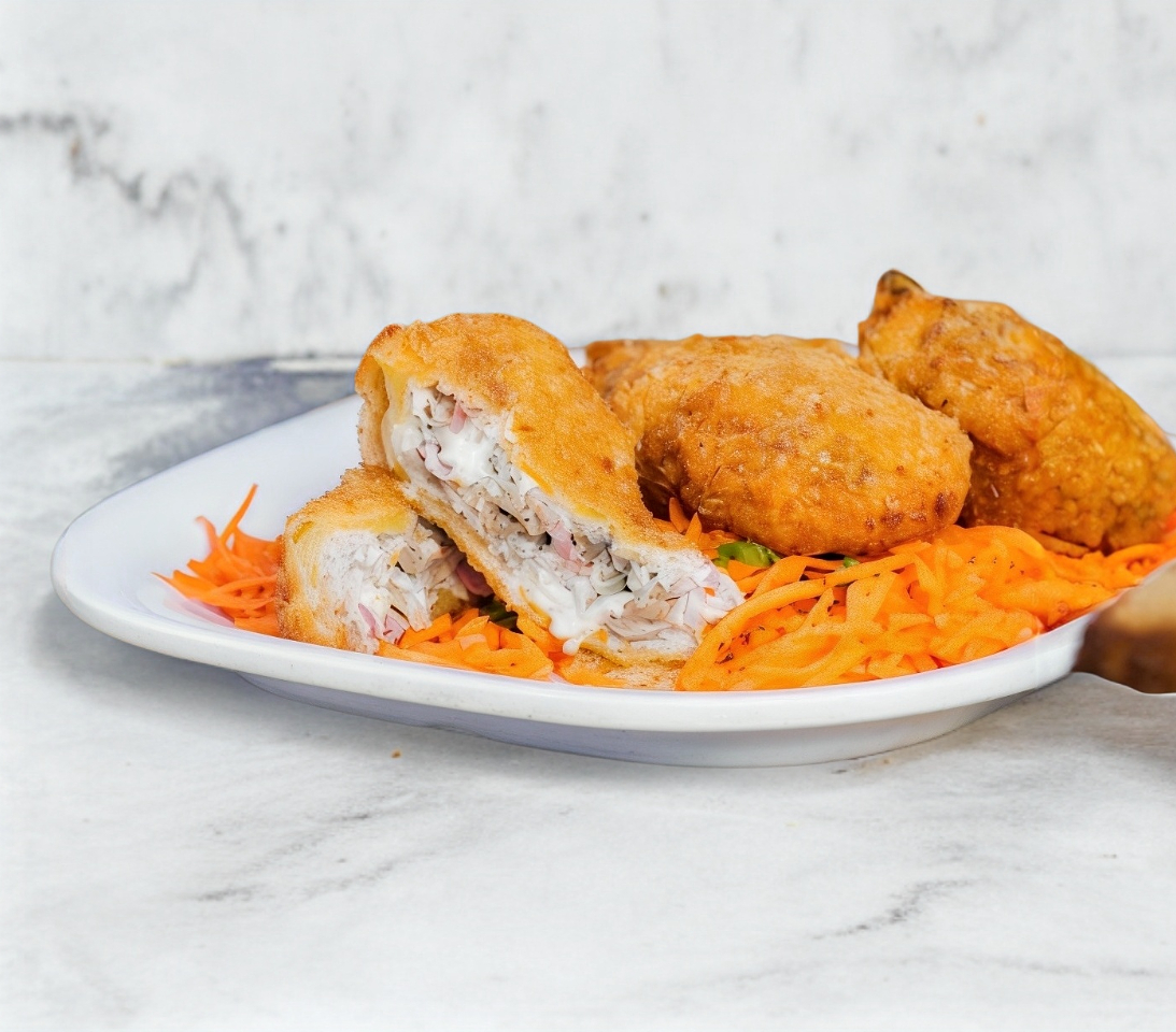 Pechuga de pollo o cerdo rellena de jamón y queso, empanizada y dorada al horno o frita. Crujiente por fuera y fundida por dentro. Suele acompañarse con guarniciones como puré de papa o ensalada.