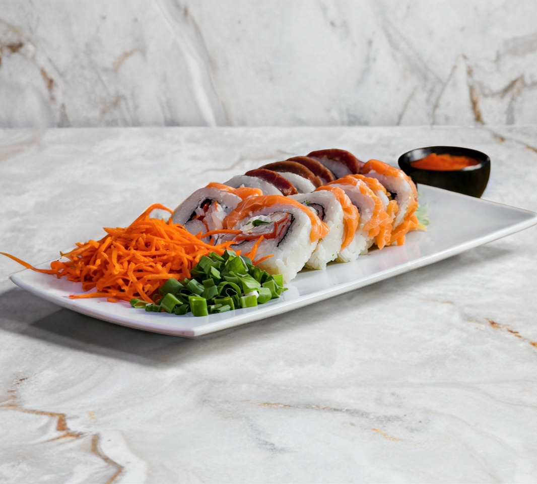 Cielo mar y tierra, 12 piezas de sushi. Plato personal