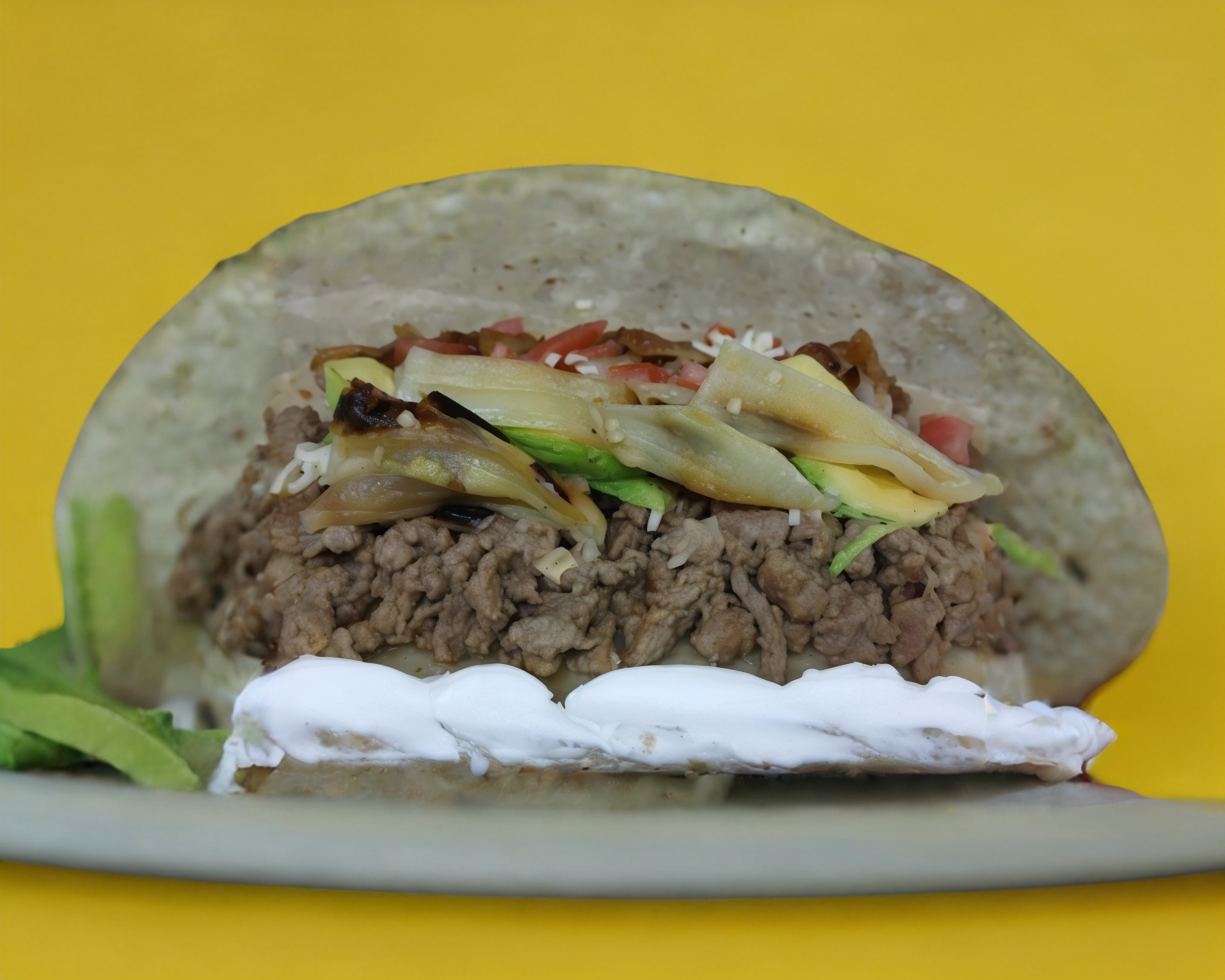 Diezmillo a la plancha, aguacate, tomate, queso, cebolla caramelizada, tocino y chile verde tatemado.