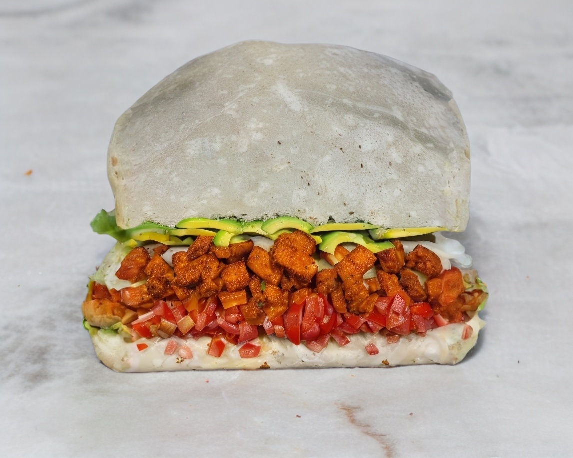 Boneless en salsa de su elección, aguacate, queso, mayonesa, tomate y cebolla asada.