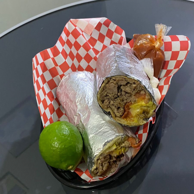 Carne adobada o res, aguacate, chile verde, cebolla, queso mozzarella, chihuahua y americano.