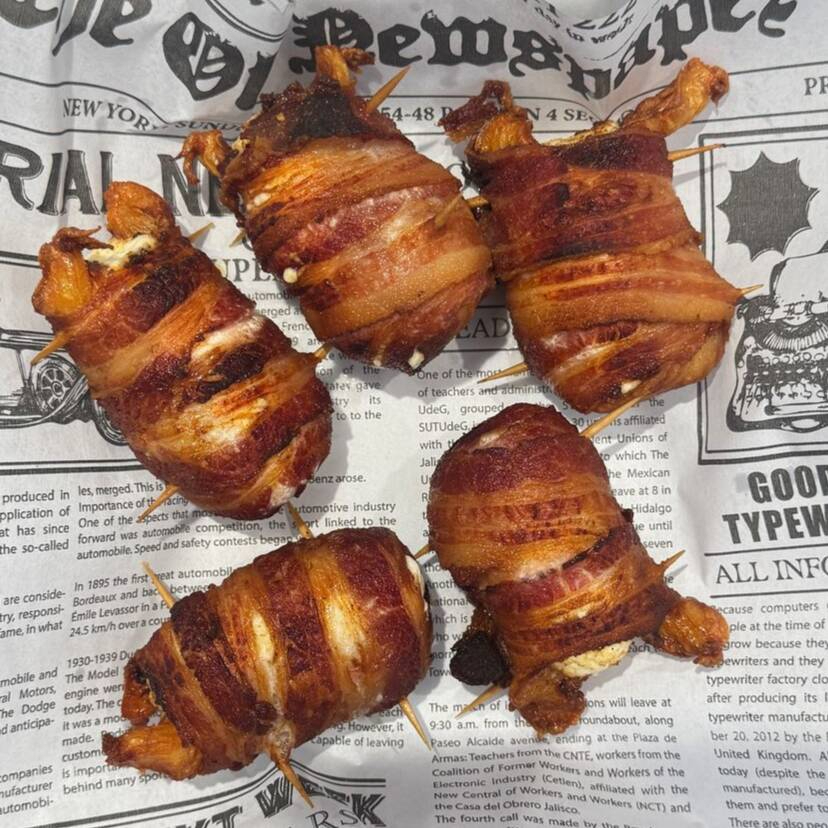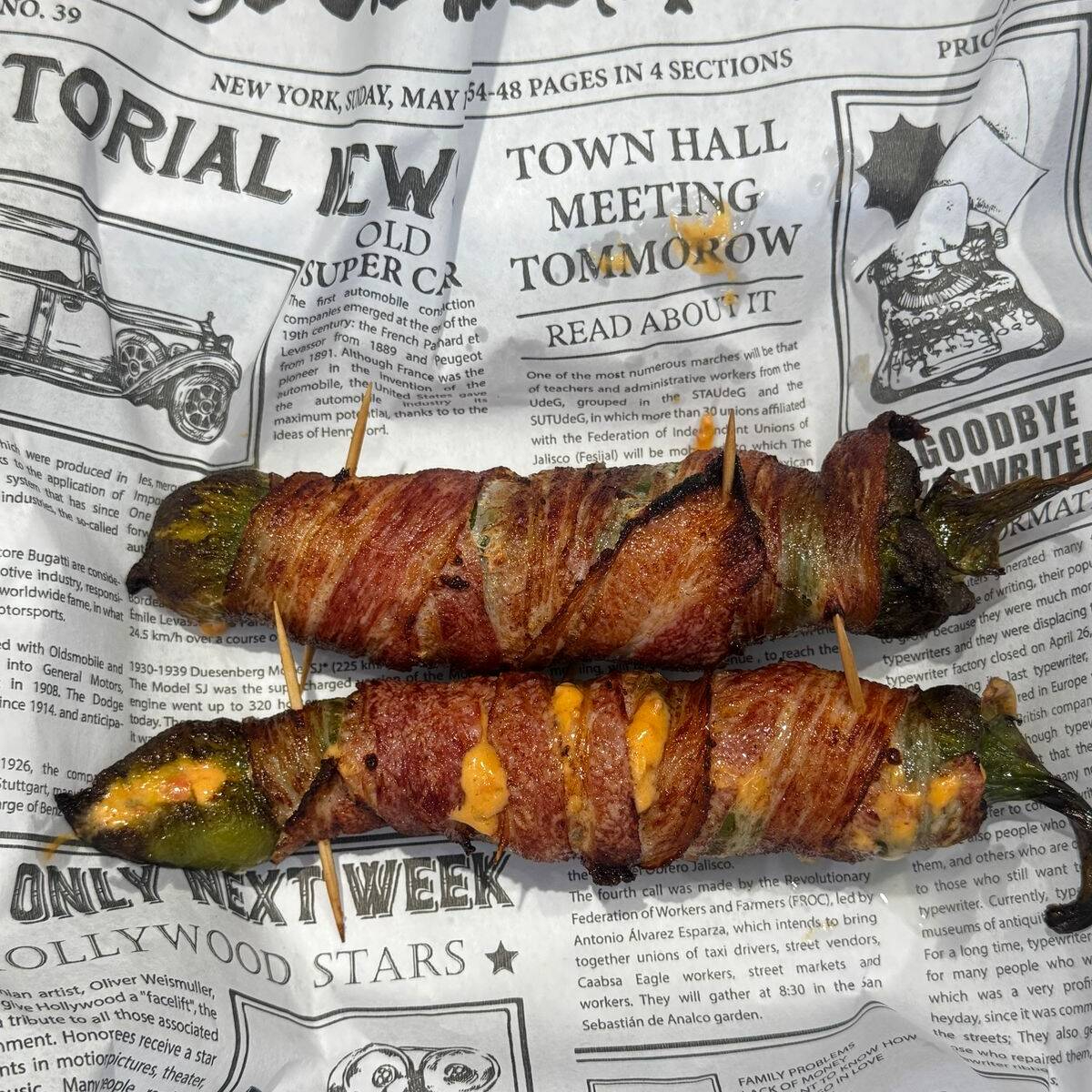 1 Chile relleno preparado al gusto envuelto en tocino o empanizado crujiente.