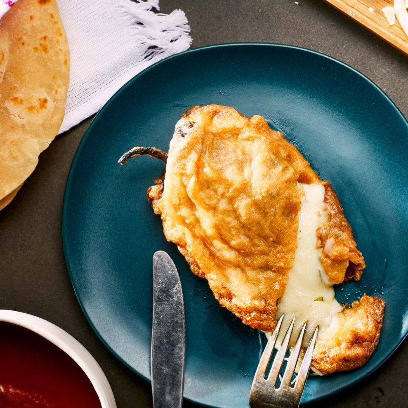 Piezas de pollo jugosas y empanizadas en porción individual, acompañada de chipilona, arroz y tortillas, incluye refresco.