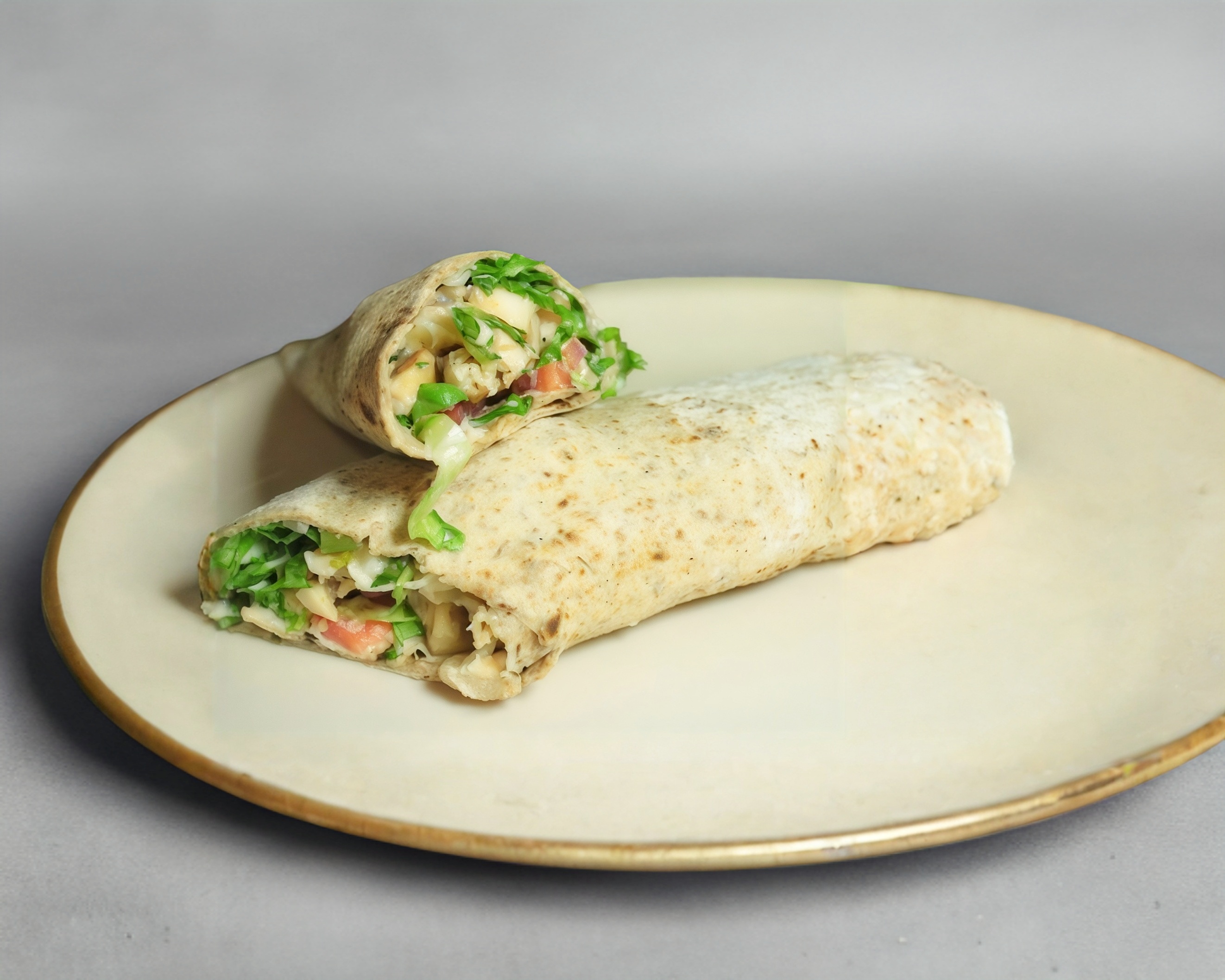 Pechuga de pollo a la plancha, queso suizo, germen de alfalfa, espinaca, cebolla, tomate y aderezo ranch.