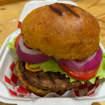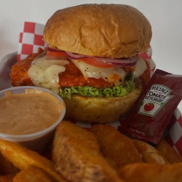 Lechuga, tomate, cebolla, queso, mayonesa y mostaza. Incluye papas.