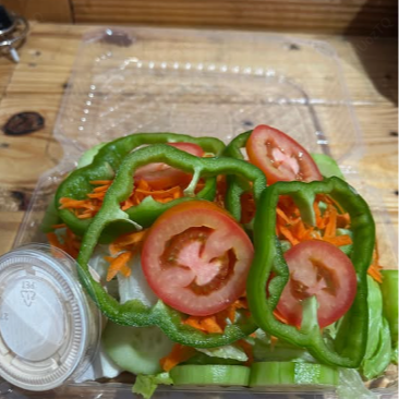 Lechuga, tomate, pimiento morrón, pepino, zanahoria, ranch.